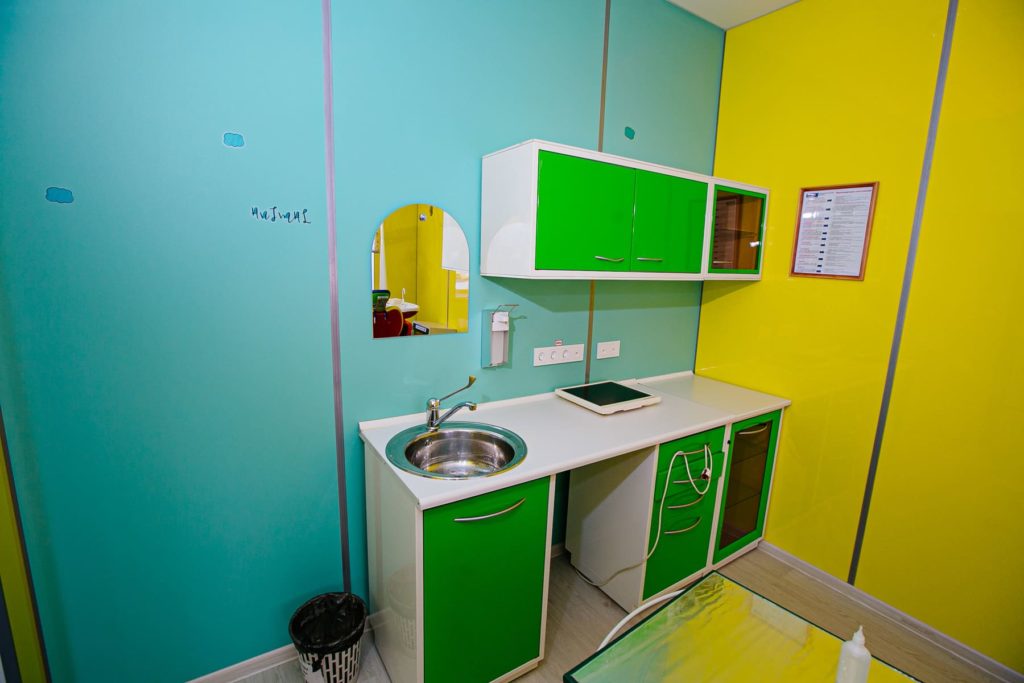 Отделка велась во всех помещениях, включая лечебные и процедурные кабинеты, коридоры и лестничные марши. Все работы по отделке были закончены за 10 дней.