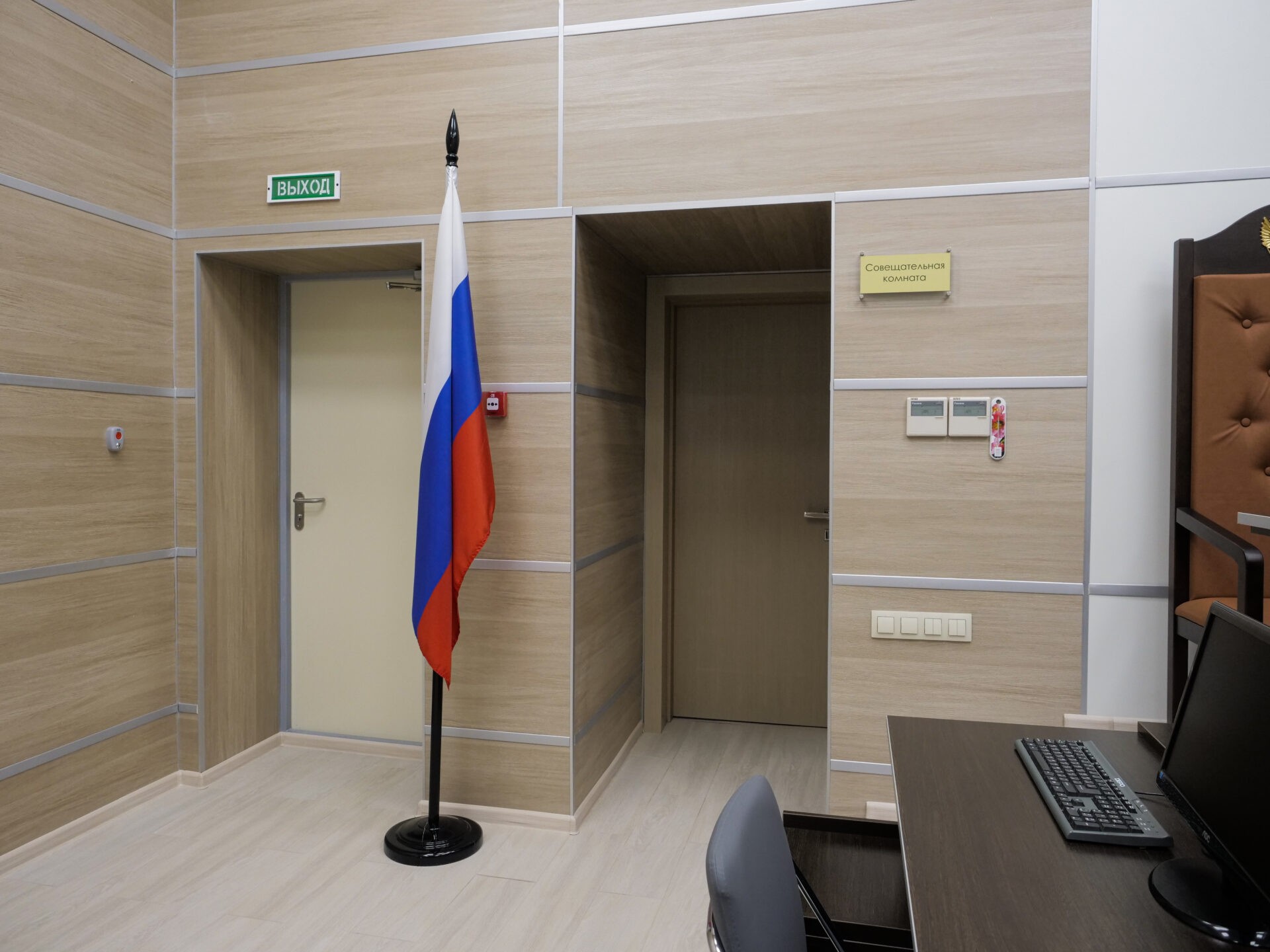 Отделка велась во всех помещениях суда: коридоры, залы заседаний и рабочие кабинеты. По словам подрядной организации удалось сдать объект на 8 месяцев раньше.